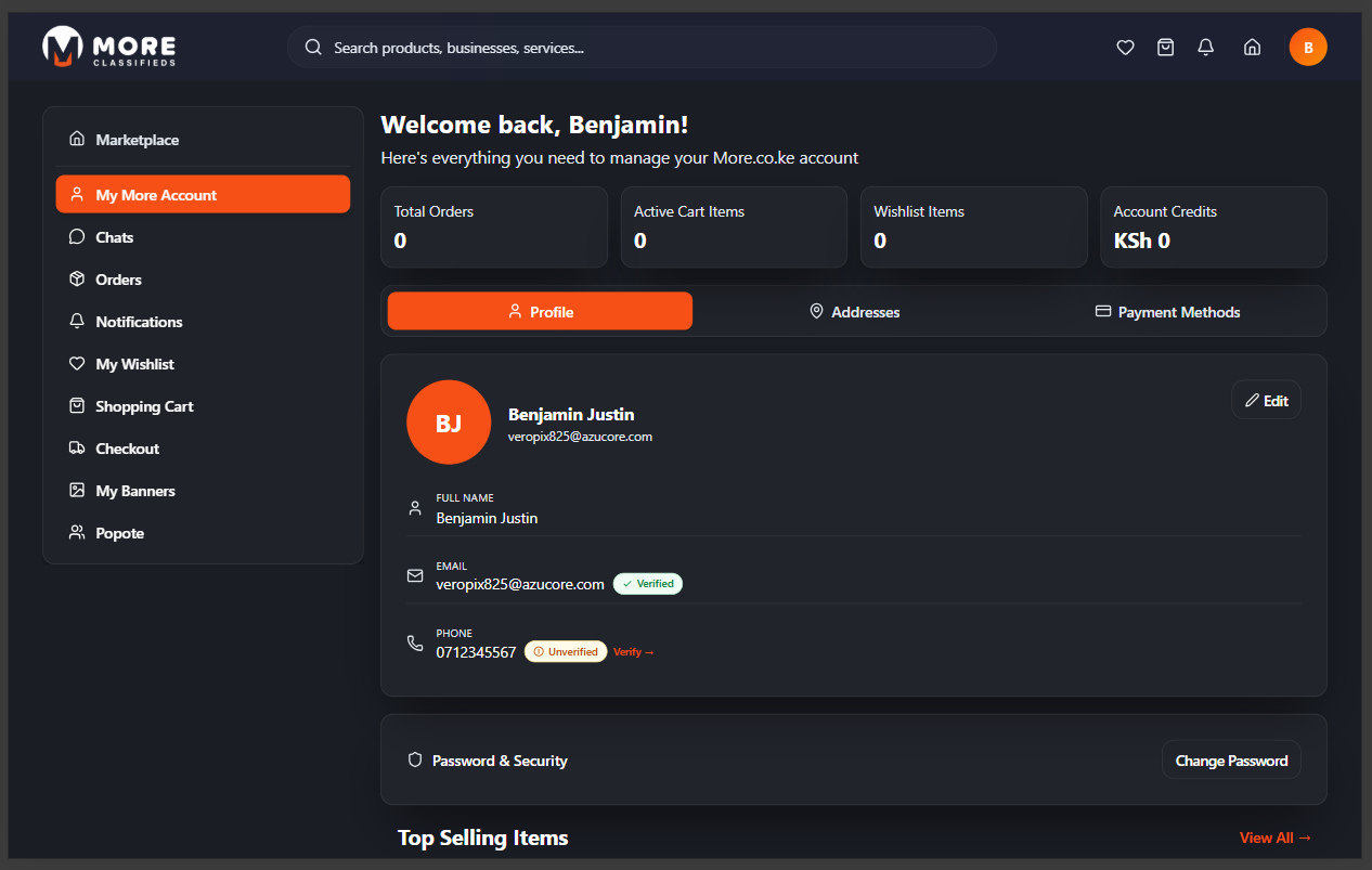 More Classifieds is Kenya's digital marketplace connecting buyers with thousands of verified businesses and sellers across retail, services, real estate, automotive, food, and more. As a buyer, you can browse products and services, place orders, save items to your wishlist, chat directly with sellers, and promote your own listings through banners.