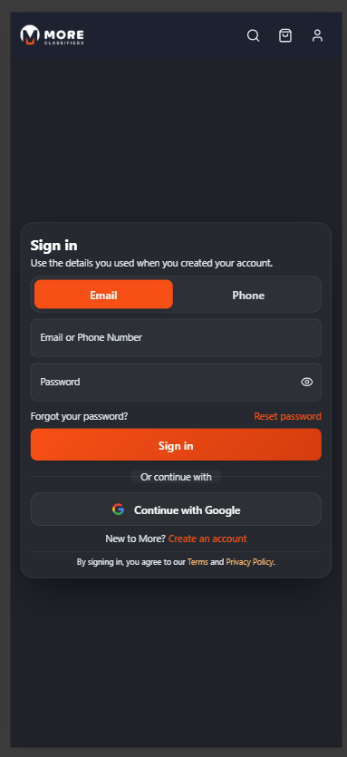 More Classifieds works on desktop browsers, tablets, and mobile phones. The interface adapts automatically to your screen size — no app download required.