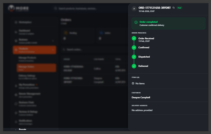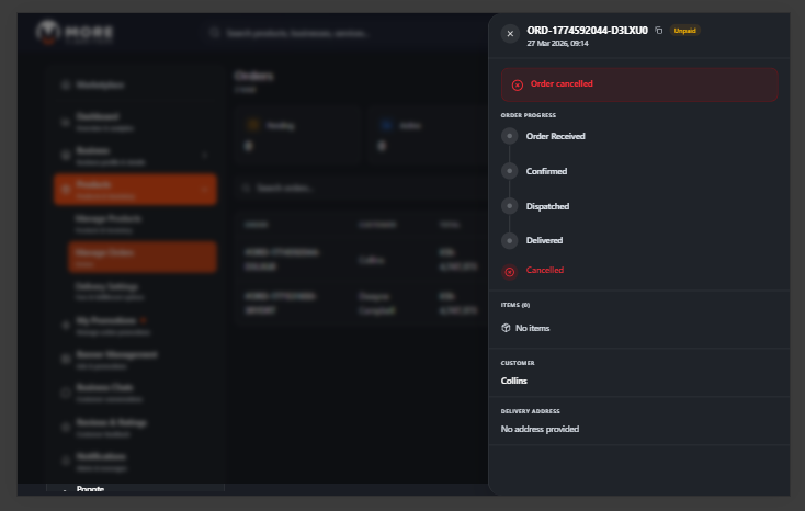 | Dispatched | Order has been handed to a courier or is on its way. |